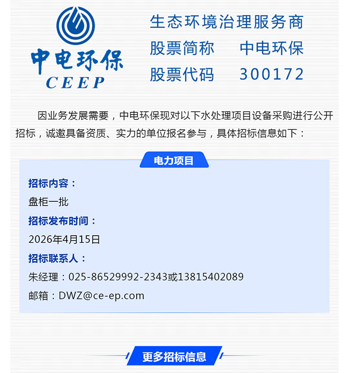 【招標(biāo)-26-11期】中電環(huán)保誠邀參與:水處理項(xiàng)目設(shè)備采購公開招標(biāo)